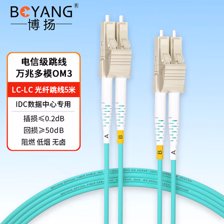 博揚 萬兆多模光纖跳線lc-lc 10米 OM3-300雙芯尾纖Φ2.0阻燃低煙無鹵LSZH抗彎曲跳纖光纖線BY-W10552M
